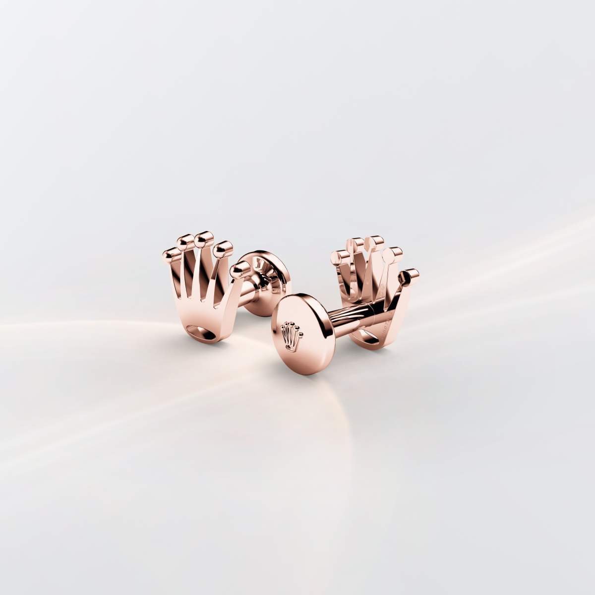 Rolex cufflinks made of 18 kt Everose gold and shaped in the form of the signature Rolex crown.