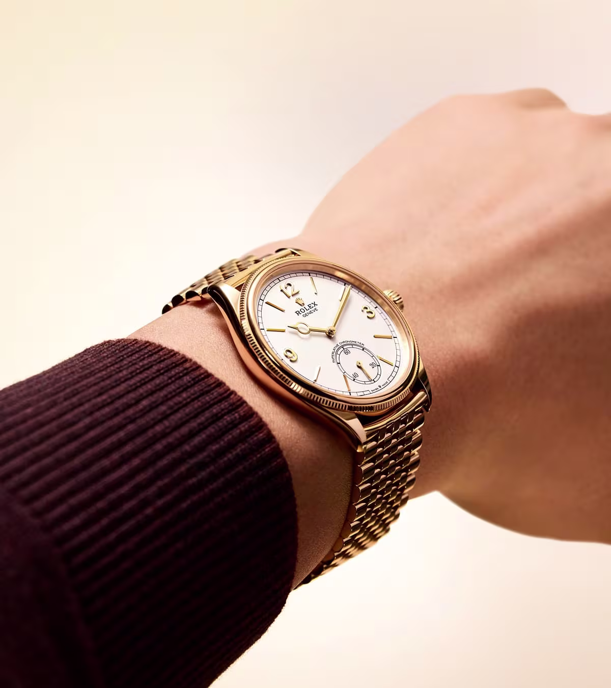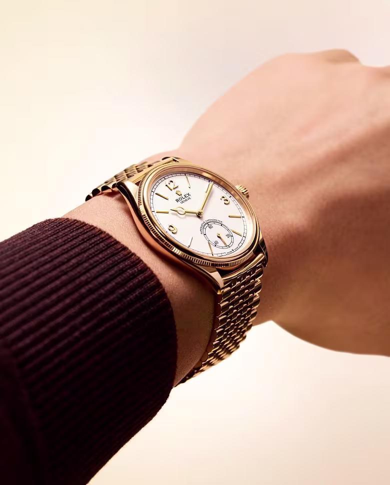 Rolex is unveiling a new metal bracelet, named Settimo, created exclusively for the Perpetual 1908 and presented on a version of the watch in 18 kt yellow gold with an intense white dial.