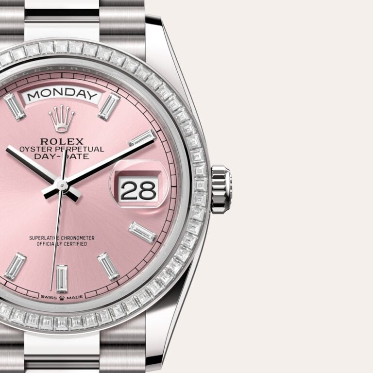 Gem-setters, like sculptors, finely carve the precious metal to hand-shape the seat in which each gemstone will be perfectly lodged. With the art and craft of a jeweller, the stone is placed and meticulously aligned with the others, then firmly secured in its gold or platinum setting. Besides the intrinsic quality of the stones, several other criteria contribute to the beauty of Rolex gem-setting: the precise alignment of the height of the gems, their orientation and position, the regularity, strength and proportions of the setting as well as the intricate finishing of the metalwork. A sparkling symphony to enhance the watch and enchant the wearer.