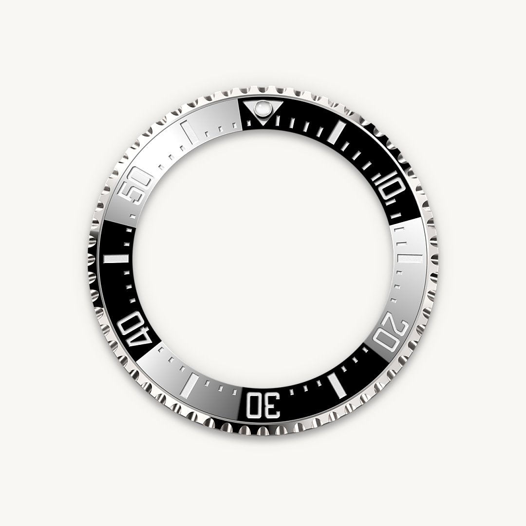 The 60-minute graduated, unidirectional rotatable bezel of the Deepsea Challenge enables divers to precisely and safely monitor their dive and decompression times. It is equipped with a patented black Cerachrom bezel insert manufactured by Rolex in a virtually scratchproof ceramic whose colour is unaffected by ultraviolet rays. The graduation is coated via PVD (Physical Vapour Deposition) with a thin layer of platinum. The dial features large Chromalight hour markers and hands, filled with luminescent material that emits a long-lasting blue glow for excellent legibility in dark conditions.