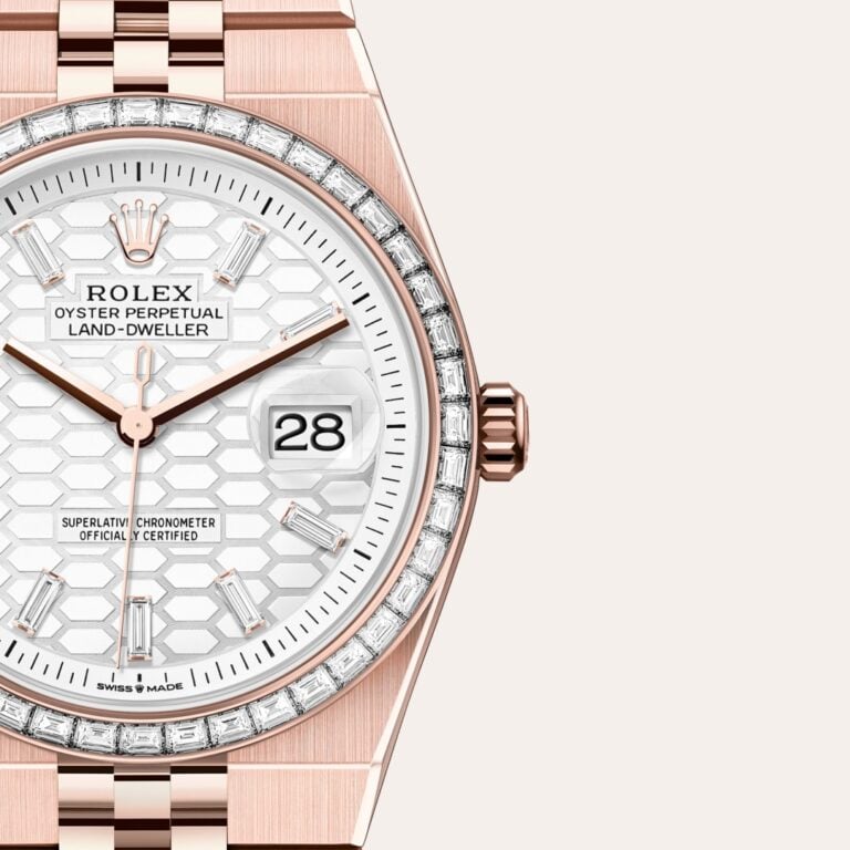 To preserve the beauty of its pink gold watches, Rolex created and patented an exclusive 18 ct pink gold alloy cast in its own foundry: Everose gold. Introduced in 2005, 18 ct Everose is used on all Rolex Oyster models in pink gold.
