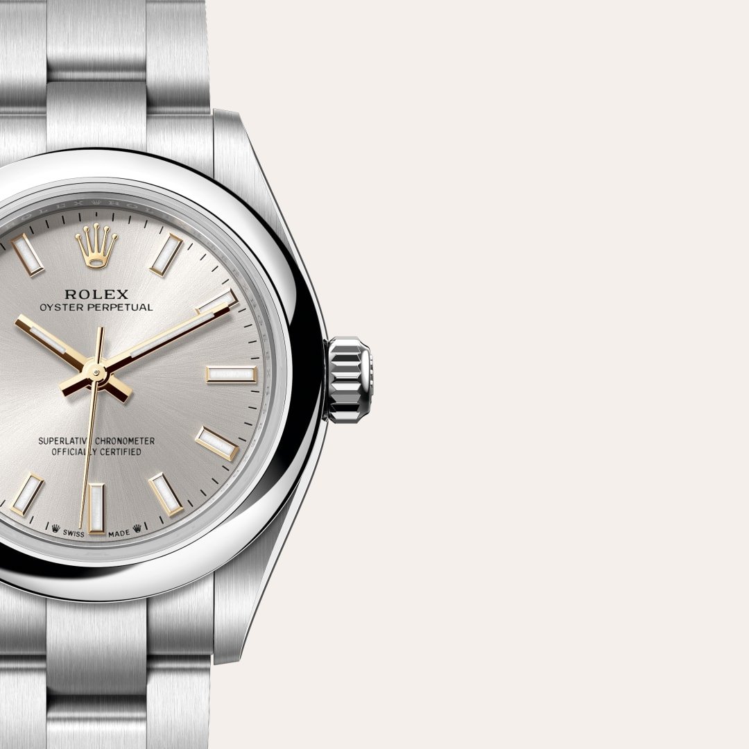 The Oyster bracelet is a perfect alchemy of form and function, aesthetics and technology. First introduced in the late 1930s, this particularly robust and comfortable metal bracelet with its broad, flat three-piece links remains the most universal bracelet in the Oyster collection. For the Oyster Perpetual models the Oyster bracelet is fitted with an Oysterclasp.