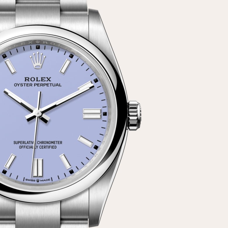 The Oyster bracelet is a perfect alchemy of form and function, aesthetics and technology. First introduced in the late 1930s, this particularly robust and comfortable metal bracelet with its broad, flat three-piece links remains the most universal bracelet in the Oyster collection. For the Oyster Perpetual models the Oyster bracelet is fitted with an Oysterclasp.