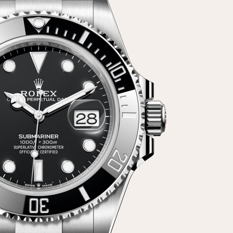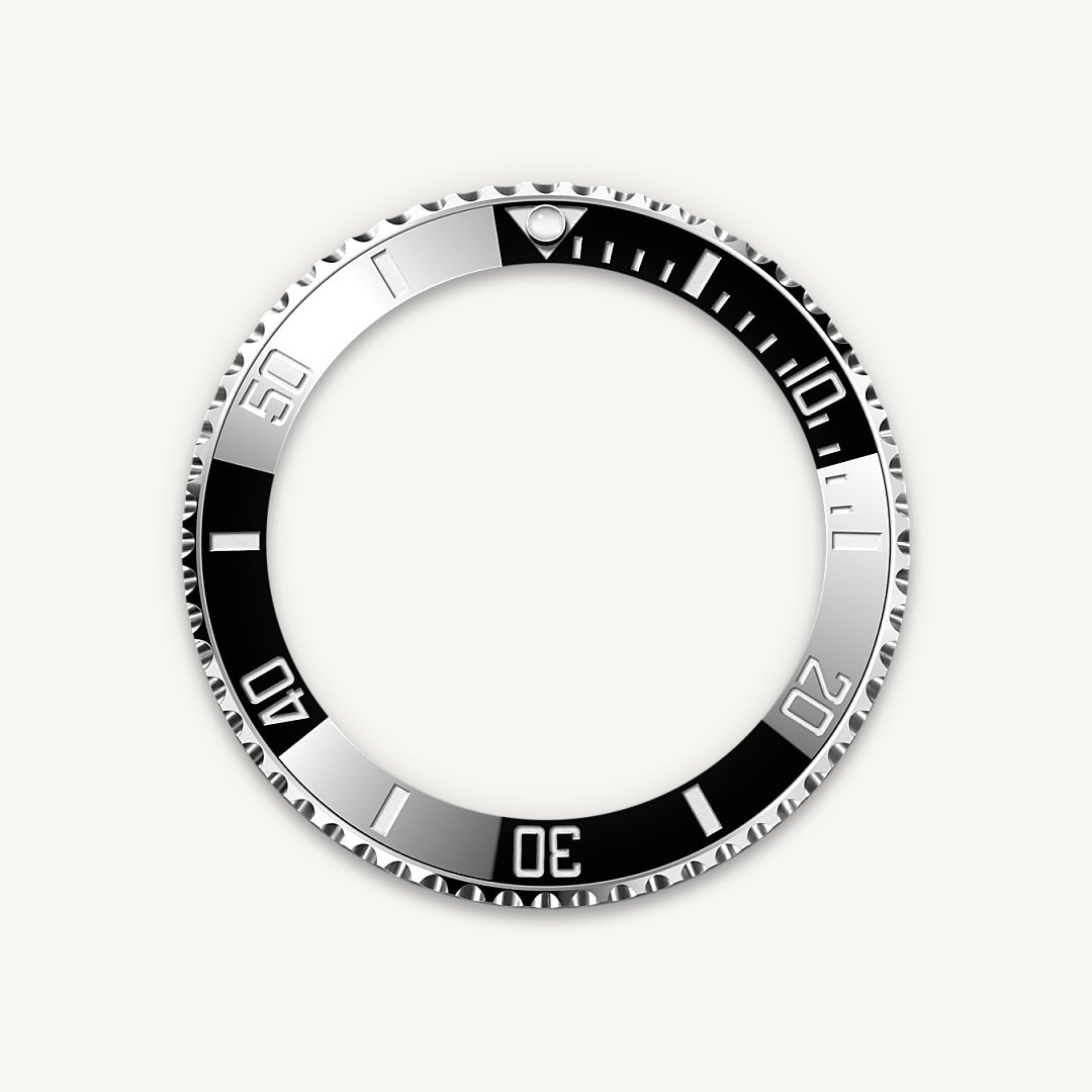 The Submariner’s rotatable bezel is a key functionality of the watch. Its 60-minute graduations allow a diver to accurately and safely monitor diving time and decompression stops. Manufactured by Rolex from a hard, corrosion-resistant ceramic, the Cerachrom bezel insert is virtually scratchproof. A luminescent capsule on the zero marker ensures legibility, no matter how dark the environment. The bezel’s knurled edge is carefully designed to offer excellent grip under water, even with gloves.